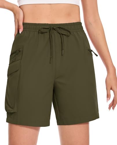 MAGCOMSEN Women's 7" Hiking Cargo Shorts Quick Dry Lightweight Golf Athletic Summer Outdoor Shorts with 4 Pockets