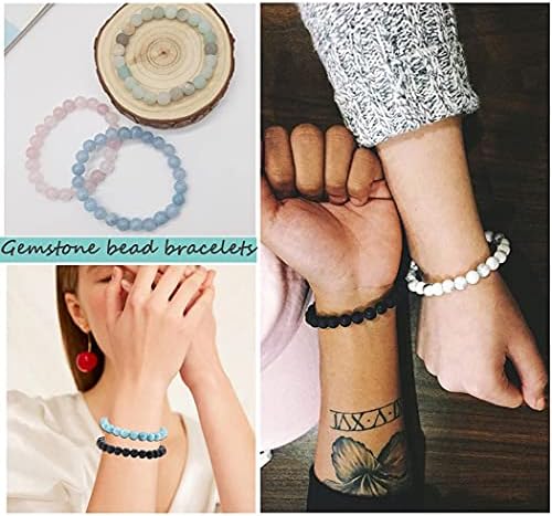 Jewdreamer 12Pcs Natural Stone Beaded Bracelets for Women Men Semi-Precious Gemstones Bracelets Crystal Beaded Bracelet Unisex Adjustable Stretch Bracelets 8MM