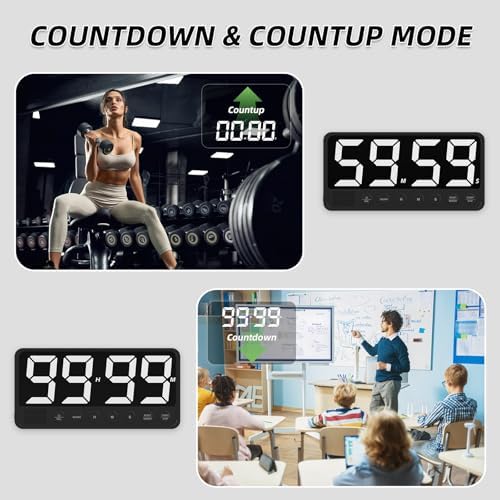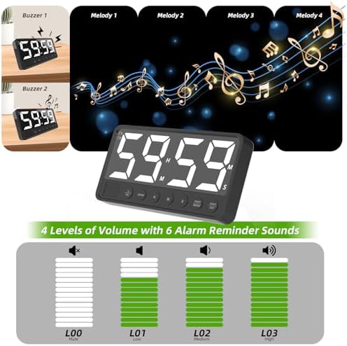 PULIVIA Extra-Large Display Digital Kitchen Timer with 7.4\u201D LED Screen, 6 Alarms & 4 Volume Levels, 3 Memory Presets, Magnetic Stand Rechargeable Count Down\/Up Timer for Cooking Home Gym, Bl