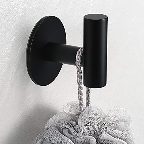 Self Adhesive Towel Hook Matte Black Coat Hook Brushed Nickel SUS304 Stainless Steel Heavy Duty Waterproof Towel Robe Clothes Hook Holder for Bathroom Kitchen Office Hotel Pool Wall Mounted Hook-2Pack