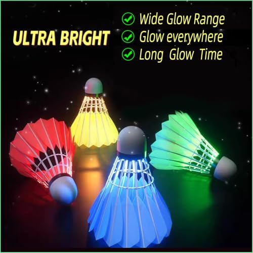 ZHENAN LED Badminton Shuttlecocks,Colourful Lighting Badminton Birdies,Plastic Nylon Shuttlecock,Goose Feather Glow in The Dark Birdie Balls for Outdoor Indoor Sport Activities (4\/5\/6 PCS)