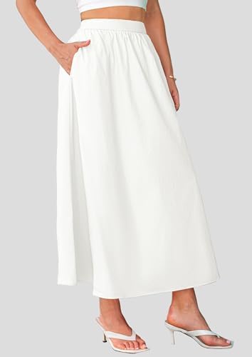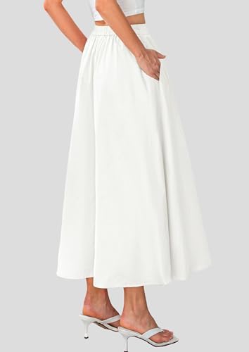 PRETTYGARDEN Women's Long Skirt 2025 Summer Fashion Wrinkled High Waist Casual Elegant Skirt Strap Pocket