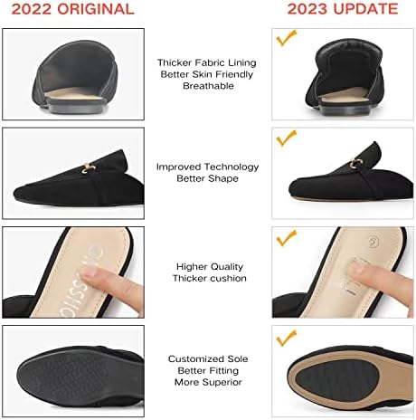 MUSSHOE Mules for Woman Buckle Flats Comfortable Slip on Women Mules Flats Shoes Backless Loafers