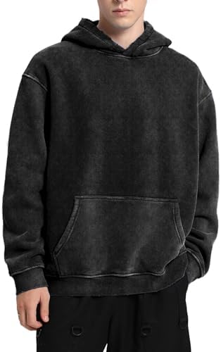 FAIABLE Mens Hoodies Oversized Unisex Acid Wash Hoodie Heavyweight Fleece Vintage Cotton Sweatshirt Men Women Streetwear