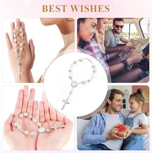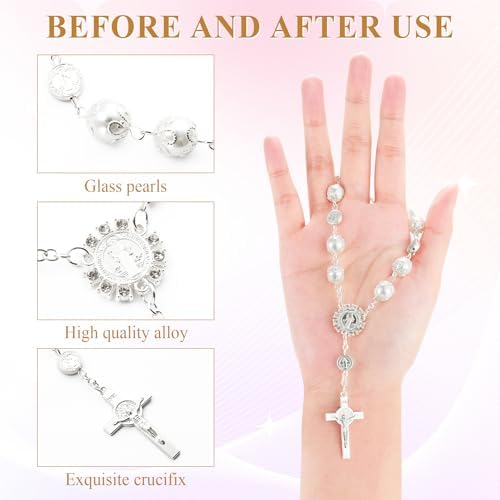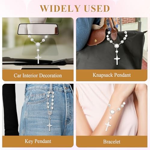 SINGARO Rearview Mirror Hanging Decor - Pearl & Cross Car Charm, Religious Rosary Pendant with Glittering Beads, Faith-Inspired Auto Accessories for Women & Men, Car Interior Accessories