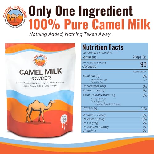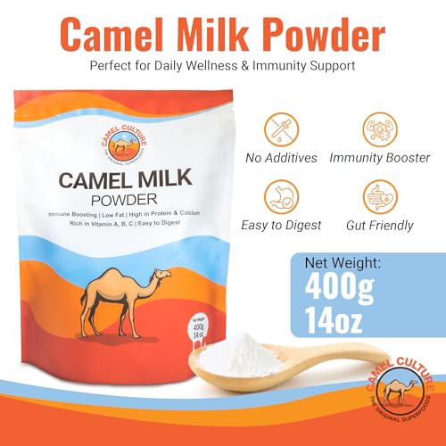 Camel Culture Dry Camel Milk Powder(400g) \u2013 Nutrient Dense, Low Lactose Powdered Milk Packets \u2013 Concentrated, Pasteurized Traditional Dairy Alternative - Health Drink Powder for Recipes, Smo
