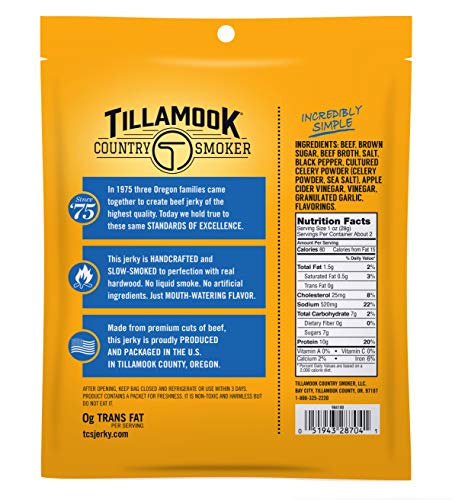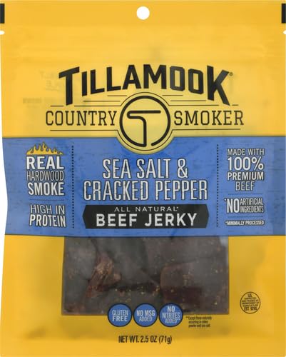 Tillamook Country Smoker Real Hardwood Smoked Beef Jerky, Sea Salt & Cracked Pepper, 2.5 Ounce
