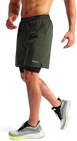 Pudolla Men\u2019s 2 in 1 Running Shorts 5"\/7" Quick Dry Gym Athletic Workout Shorts for Men with Phone Pockets