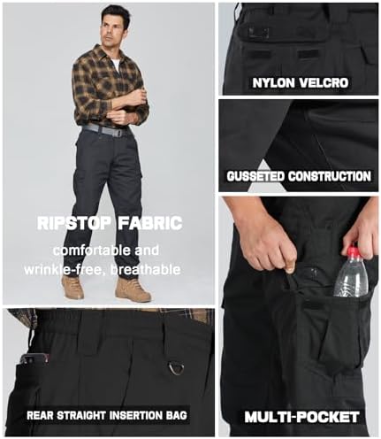 SPOSULEI Mens Tactical Pants Ripstop Cargo Work Pants with 9 Pockets Water Resistant Breathable Hiking Construction Pants