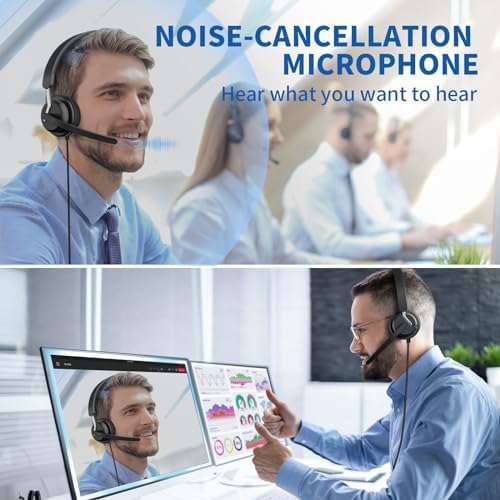awatrue USB Headset with Microphone for PC, Computer Headset with Noise Canceling Microphone for PC Laptop, in Line Mute Controls, Wired Headset for Work from Home\/Office\/Call Center\/Teams\/Zoom