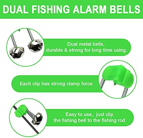 DAFURIET Fishing Alarm Bells, 50PCS Plastic Fishing Rod Clips with Dual Alert Bells \/20PCS with Led Lights