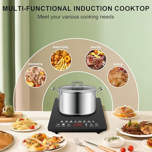Portable Induction Cooktop Hot Plates, 750W Adjustable Sensor Touch Single Electric Cooktops Countertop Stove with 3-Hour Timer, 8 Cooking Preset Programs, Auto Pot Detection \u0026amp; Safety Lock,