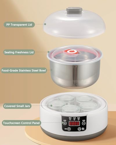 36 Hour Yogurt Maker, Automatic Digital Yoghurt Maker with Constant Temperature Control and Timer, Multifunctional Probiotic Yogurt Machine for Home Cheese, Fruit Wine (With 4 Glass Jars 42 Ozs)