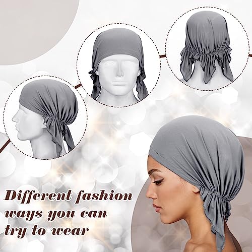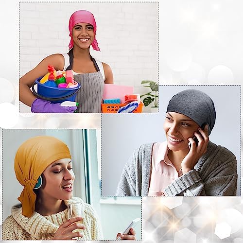 Geyoga 6 Pcs Chemo Headwear for Women Pre-Tied Head Scarves Turban Beanie Caps Cancer Head Wrap Headscarf for Yoga Running