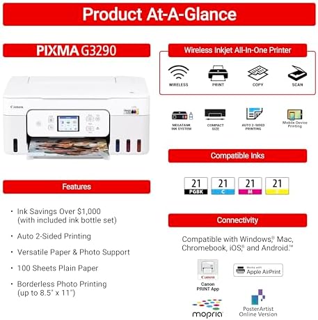 Canon Megatank G3290 All-in-One Wireless Supertank [Megatank] Printer Print, Copy Scan Mobile Printing 2.7" LCD Color Touchscreen Auto Duplex