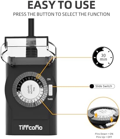 Outdoor Timer Outlet Waterproof, 24 Hour Mechanical Light Timer Outdoor, 2 Grounded Outlets for Home and Garden, 15A 1\/2HP, Heavy Duty, ETL Listed (1 Pack)