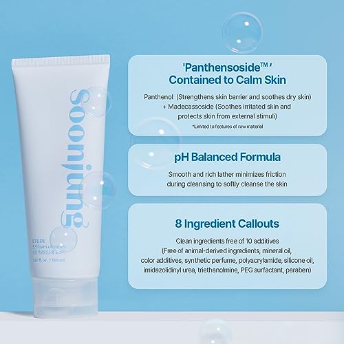 ETUDE SoonJung 5.5 Foam Cleanser, Face Wash for Sensitive Skin, Soft Bubble, Hypoallergenic Cleansing, Mild Deep Cleansing, Low pH Level, Panthenol, Madecassoside, Korean Skin Care, Beauty (5.1 Fl Oz)