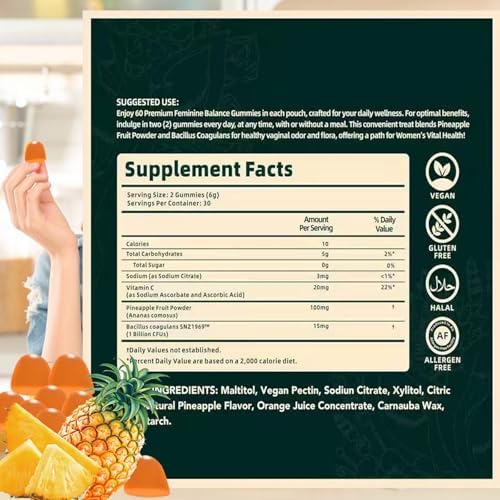 Premium Vital Nature Balance Feminine Gummies for Women's Sealed-1pack,Pineapple Feminine Gummies, Easy to Store, Help Unleash Confidence-60 Pieces