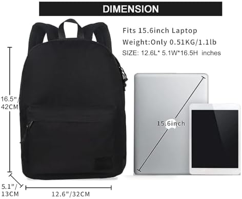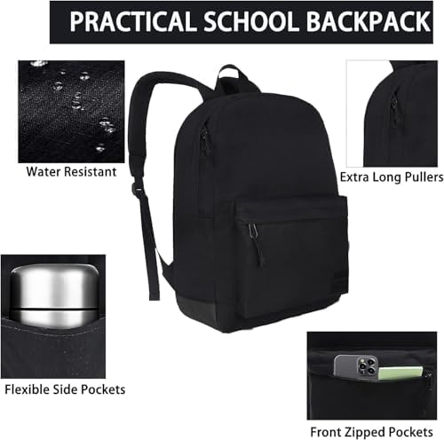 SUPACOOL Casual Laptop Backpack for Men and Women, School Backpack for Boys and Girls, College Bookbag, USB Charging Port, Lightweight Back Pack(Black)