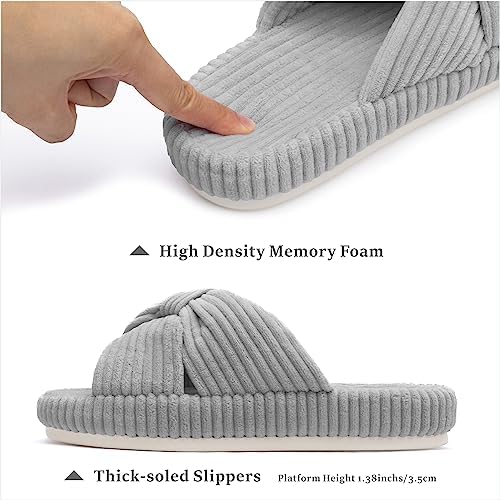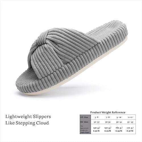 【Sizing Guide】These slippers are elegantly shaped to adorn the line of your feet. Please measure your foot length before purchasing. US 5-6(foot length:9.45"/24cm); US 7-8(foot length:9.84"/25cm); US 9-10(foot length:10.24"/26cm); US 11-12(foot length:10.63"/27cm). If you are 6.5/8.5/10.5, or if you have narrow feet or low insteps, please choose slippers one size down. 【Chantomoo Original Appearance Patented Slippers】The corduroy fabric of these slippers is fine and soft, skin friendly, warm, and non-slip underfoot. Corduroy fabric is combined with bowknot elements to make cross band slippers. The design is unique, classic and simple, with retro and elegant temperament, bright and stylish colors, suitable for all ages and all clothes. The memory foam slippers relax the feet, the platform is supported and not collapsed, and the EVA sole is wear-resistant and non-slip. At the same time, these materials make it very light, like walking on the cloud. These slippers are suitable for all scenes, indoor, bedroom, shopping, walking, party, travel, wedding, etc. Packaged in a unique and adorable shoebox, it makes the perfect slipper gift. Open toe slippers are breathable, lightweight, quiet, suitable for all seasons, perfect house slippers. ★Easy care, machine wash or hand wash, air dry, do not bleach.