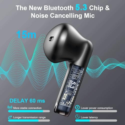 Wireless Earbuds, Bluetooth 5.4 Earbuds Stereo Bass, Bluetooth Headphones in Ear Noise Cancelling Mic, Sports Earphones IP7 Waterproof, 32H Playtime USB C Mini Charging Case Ear Buds for Android iOS