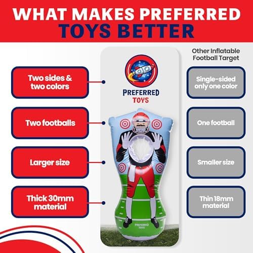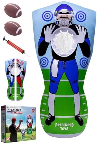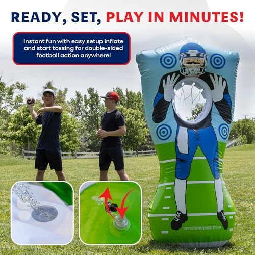 Inflatable Football Target - Double-Sided Toss Training Game with Mini Footballs - Fun Kids Throwing Football Games for Indoors, Outdoors, Birthdays, Camping, Beach - 65 Inch