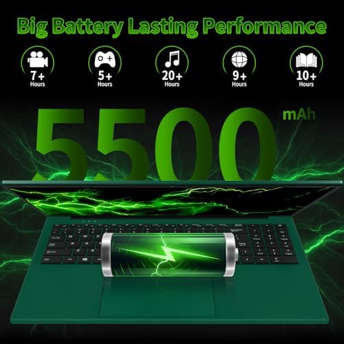 BINTEC 16 Inch Green Laptop,1920 * 1200 IPS,16GB DDR4 Windows11 Notebook PC, Celeron N5105(up to 2.9 GHz),Lightweight Notebook with Backlit Keyboard and Fingerprint Unlock Green, 16G+512GB SSD
