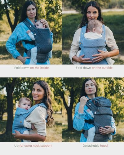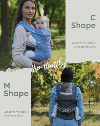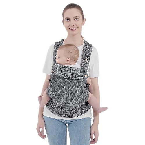 AUYEAZGO Baby Carrier for Newborn to Toddler, Woven Fabric, Jacquard Weave 100% Cotton, Compact, Adjustable and Ergonomics Infant Carrier with Lumbar Support, 7-44 pounds (Diamond Pattern - Black)