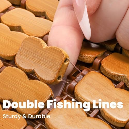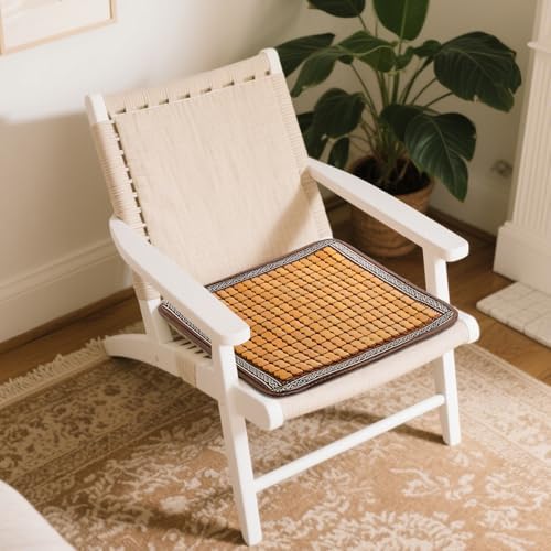 ELFULLY 2 Pcs Bamboo Chair Cushions, 16.5" x 16.5" Breathable Seat Mat for Summer, Anti-Slip Comfortable Seat Pad with Mahjong Design, Natural Carbonized Bamboo Butt Cooler for Car Truck Home