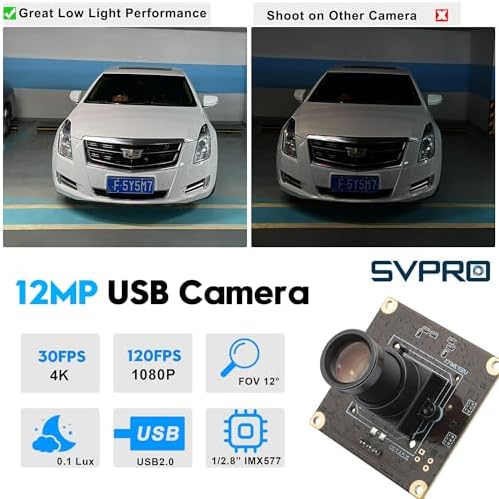 SVPRO 1080P 120fps High Speed Camera Module 12MP 4K 30fps Industrial Video Camera with M12 Lens 25mm Focal Length Narrow Angle UVC Security Monitoring Camera for PC Laptop Raspberry Pi