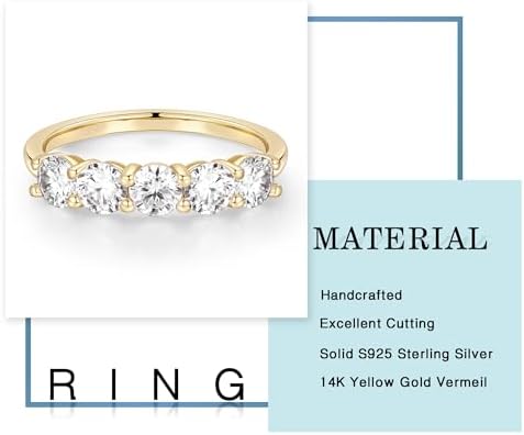 MOOSEA Valentines Day Gifts for Her 5 Stone Moissanite Rings for Women, 4MM D Color VVS1 Clarity Lab Created Moissanite Anniversary Rings 14K White Gold Vermeil 5 Stone Moissanite Wedding Bands