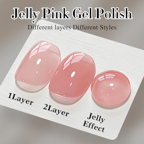 Double Rhythm Translucent Gel Polish Sheer Neutral Natural Light Milky Same Color Same Bottle 15ML Jelly Nail Polish Nail Art DIY at Home (Pink Clear-A1323)