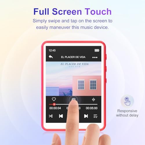 MECHEN 64GB MP3 Player Bluetooth 5.3 with 2.4" Full Touch Screen,Portable Digital Music Player with Speaker,FM Radio, Line Recording, HiFi Lossless Sound, Support up to 128GB. (Red)