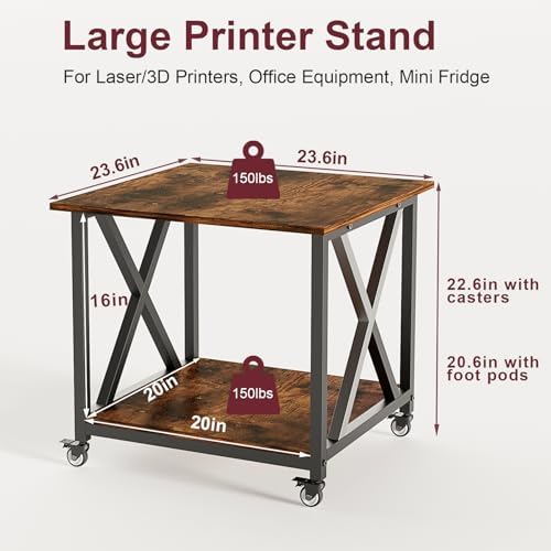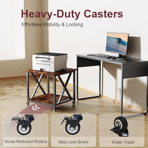 Vokumba 23.6 Inches Printer Table & Wooden Copier Stand with Storage for Home Office, Rolling Printer cart with Industrial Wheels for Home\/Business, Rustic Brown