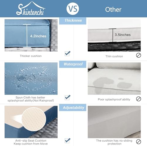 Shintenchi 5 Pieces Outdoor Patio Sectional Sofa Couch, Silver Gray PE Wicker Furniture Conversation Sets with Washable Cushions & Glass Coffee Table for Garden, Poolside, Backyard (Aegean Blue)