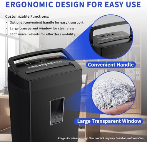 BONSAII Customizable Shredder Up to 110-Sheet Auto Feed, 60-Min Continuous Run Time, 6-Gallon Bin Optional Handle & Wheels Shreds Paper, Mail, CDs, Staples, Clips Multiple Colors Available