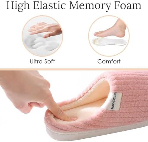 HUXMEYSON Slippers for Women, Warm Memory Foam Comfy House Slippers with Anti-Skid Rubber Sole for Indoor and Outdoor