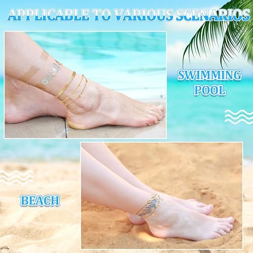 Hicarer 16 Pieces Ankle Bracelets 14K for Women Anklets Set Boho Beach Anklets Foot Chains Adjustable Foot Hand Jewelry Romantic Gift