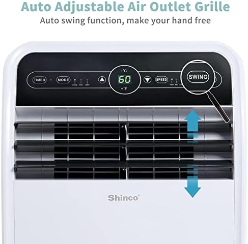 Shinco 12,000 BTU Portable Air Conditioner with WiFi, Portable AC Unit with Built-in Cool, 3-in-1 Cooling Fan & Dehumidifier for Rooms up to 400 Sq.Ft, Remote, 24H Timer, Installation Kits