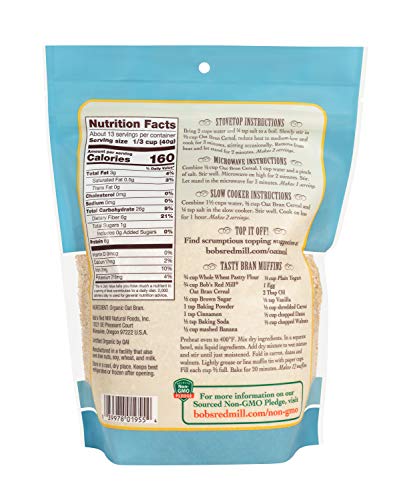 Bob's Red Mill Organic Oat Bran, 18oz (Pack of 4) - Non GMO, Vegan, Kosher