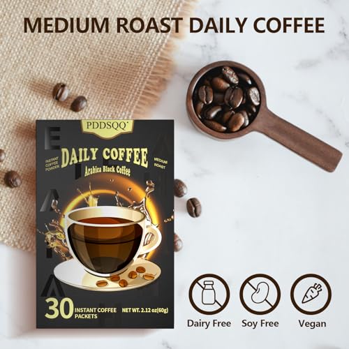 Instant Coffee Packets 30 Packs, Medium Roast Sugar Free Black Coffee Single Serve, 100% Arabica Beans (2oz \/ 60g), Hot or Iced Instant Coffee Powder Bulk for Camping Fitness Office Holiday Gifts