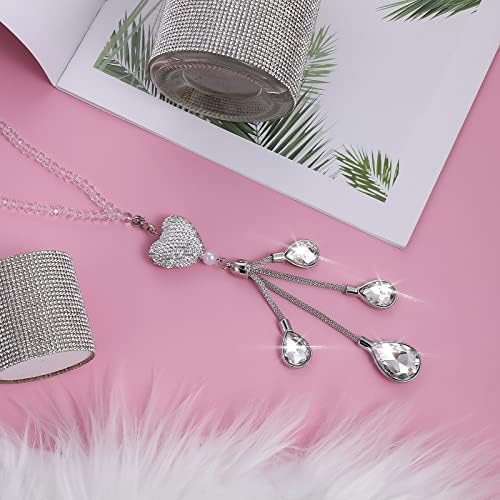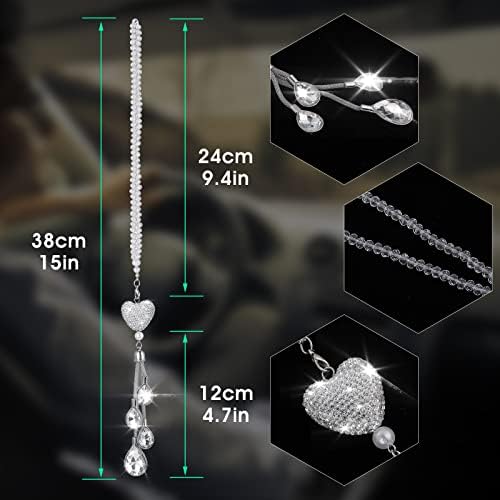 cobee Heart Diamond Car Hanging Bling Accessories, Crystal Car Rear View Mirror Charms Car Decoration Lucky Decor, Car Interior Hanging Pendant Charm Ornament Pendant for Women (White)