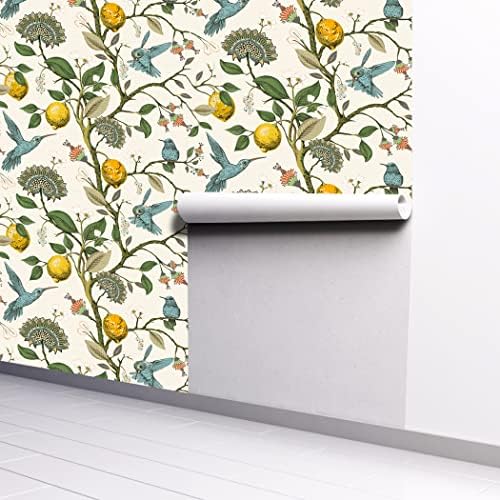 Meihodan Blue Bird Self Adhesive Wallpaper Fresh Lemon Tree Peel and Stick Wallpaper Removable Waterproof Prepasted Contact Paper Wall Mural 17.7in x 9.8ft