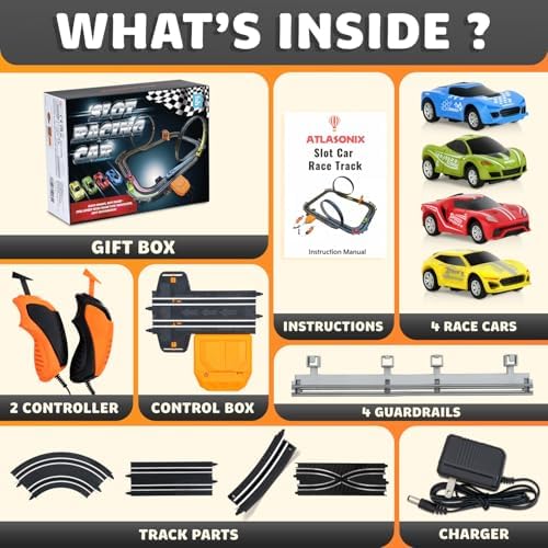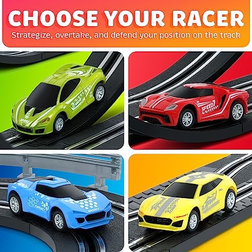 Slot Car Race Track Sets, Race Car with 4 High Speed Cars, Race Tracks for Kids Ages 4-8, Electric Slot Car Race Track Sets, Remote Control Car, Gifts Toys for Boys