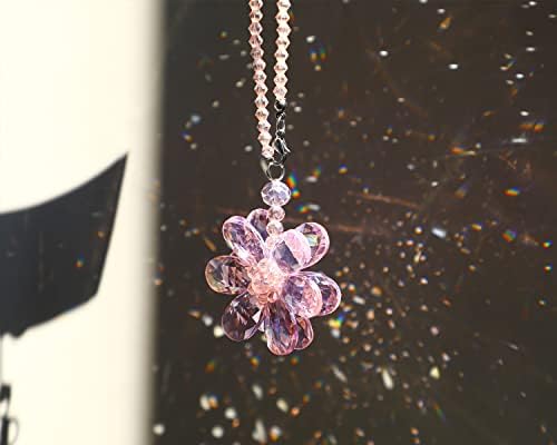 Crystal Flower Car Rear View Mirror Pendant - Pink Crystal Beads Charm Decor for Women Interior