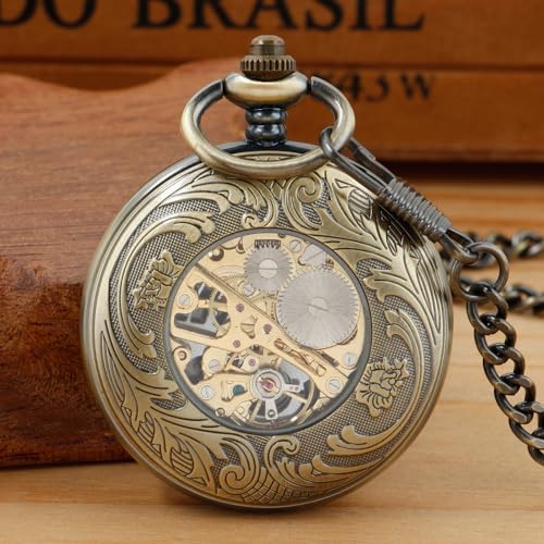 Tiong Bronze Single Opening Eagle Design Mechanical Pocket Watch, Men's Mechanical Movement Roman Digital Dial Pocket Watch