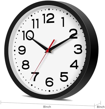 Roymnie Wall Clock Silent No Ticking Modern Clock Battery Powered 8 inches (approximately 20.3 cm) Small Classic Simulation Decoration Kitchen, Living Room, Office, Bedroom, Bathroom (Black)