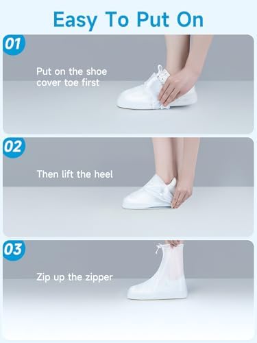 Zbyoujer Waterproof Shoe Covers - Boot Covers Shoe Covers for Rain Overshoes Reusable Over Shoes Galoshes Shoe Protectors with Waterproof Zipper Not-Slip Rain Shoe Covers for Women and Men