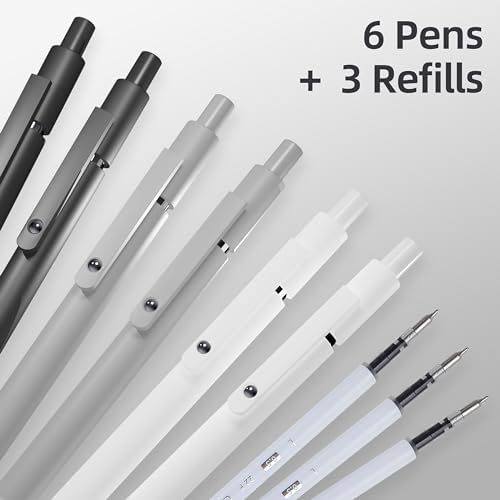 Aesthetic Gel Ink Pens, 0.5mm Fine Point for Smooth Writing, 6 Pens + 3 Refills No Smear & Bleed Quick Dry, Retractable, Ideal for Journaling and Note-Taking, Stylish Office and School Supplies