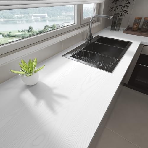 Yenhome Contact Paper Wood Grain Contact Paper Peel and Stick 24 Inch Wide X118 White Wood Vinyl Wrap for Furniture Kitchen Cabinet Vinyl Wrap Wood Wallpaper for Countertop Cover Waterproof